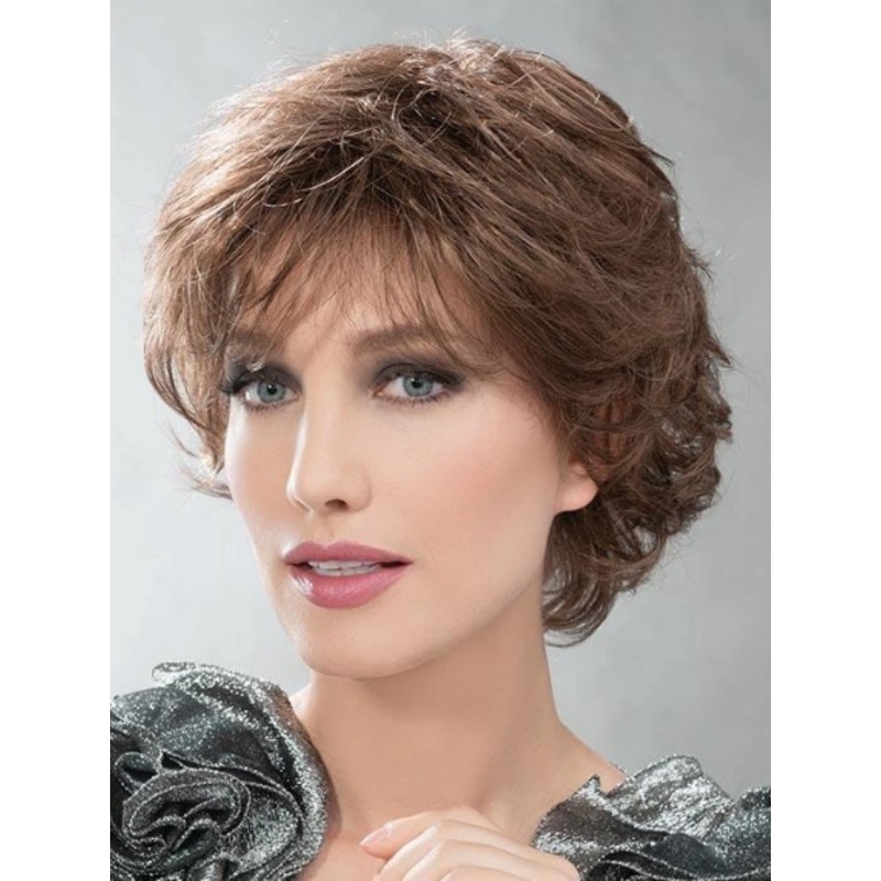 The Wide Wig is part of Ellen Willes Elements Collection. This elegant style showcases all-over layers, soft body, and curls, complemented by flattering wispy bangs suitable for any face shape. The wig features a lightweight and breathable wefted cap for a